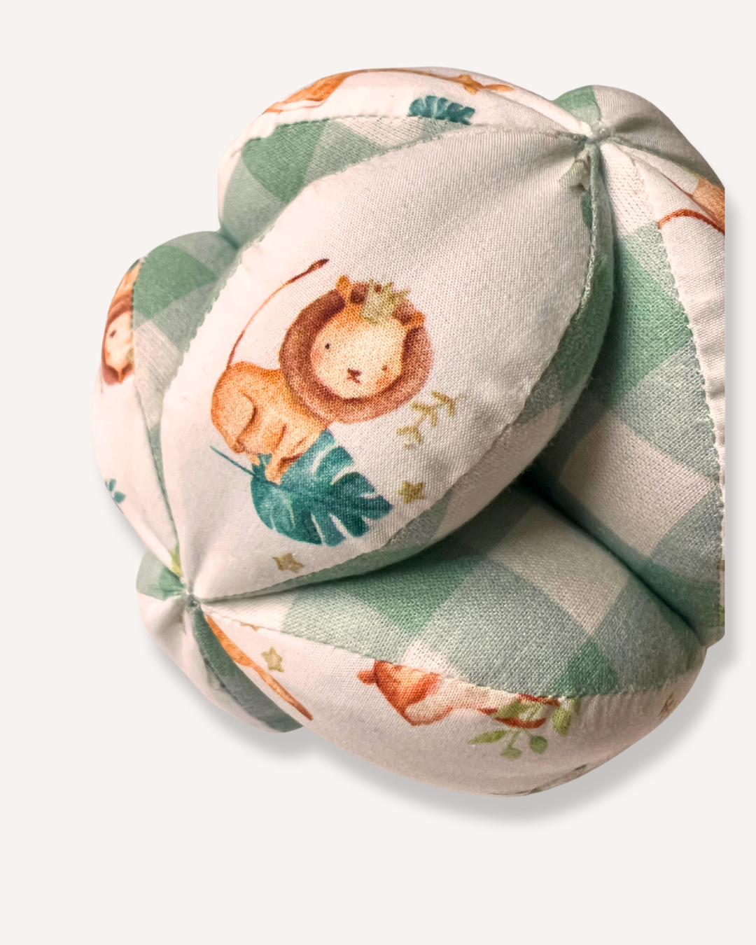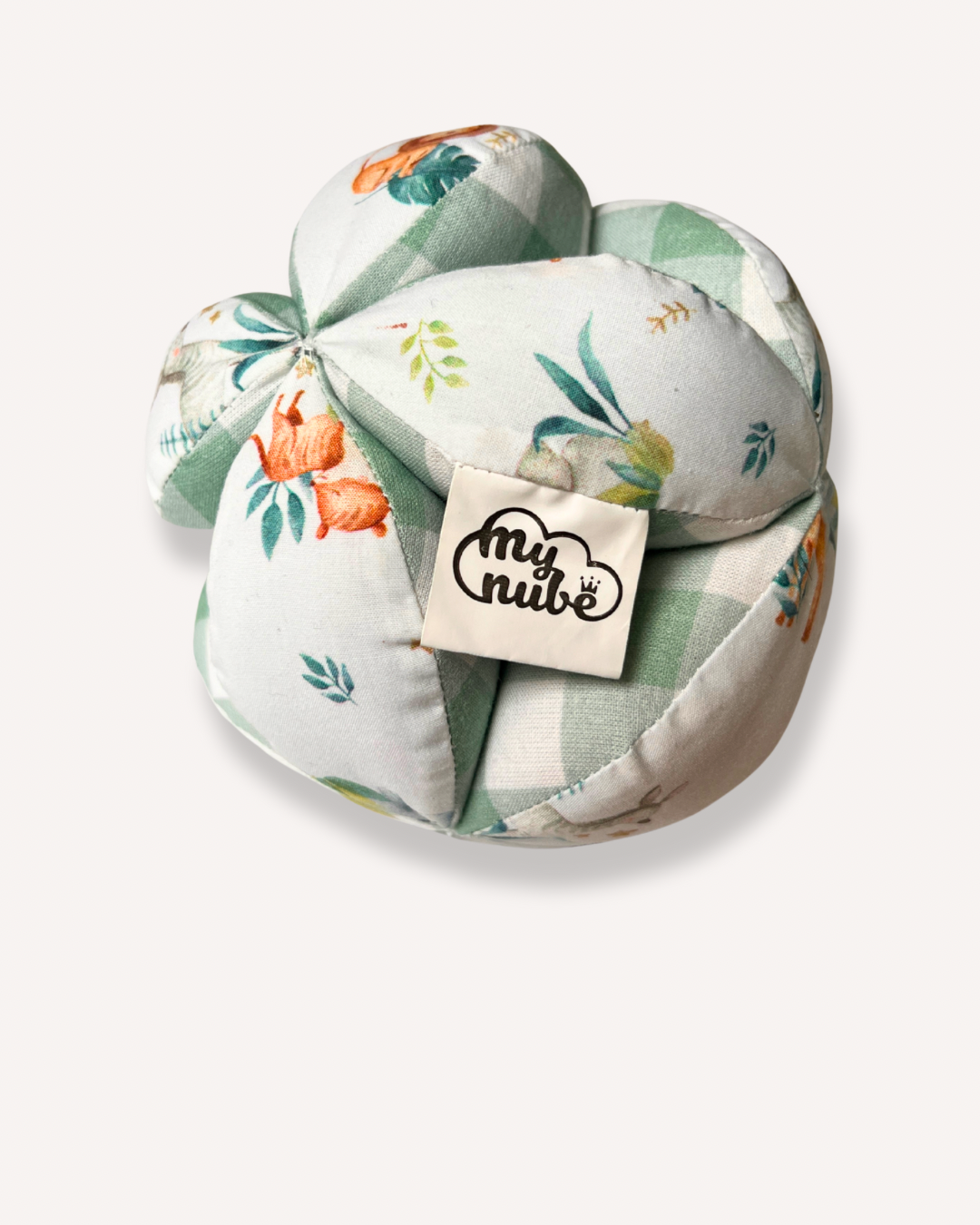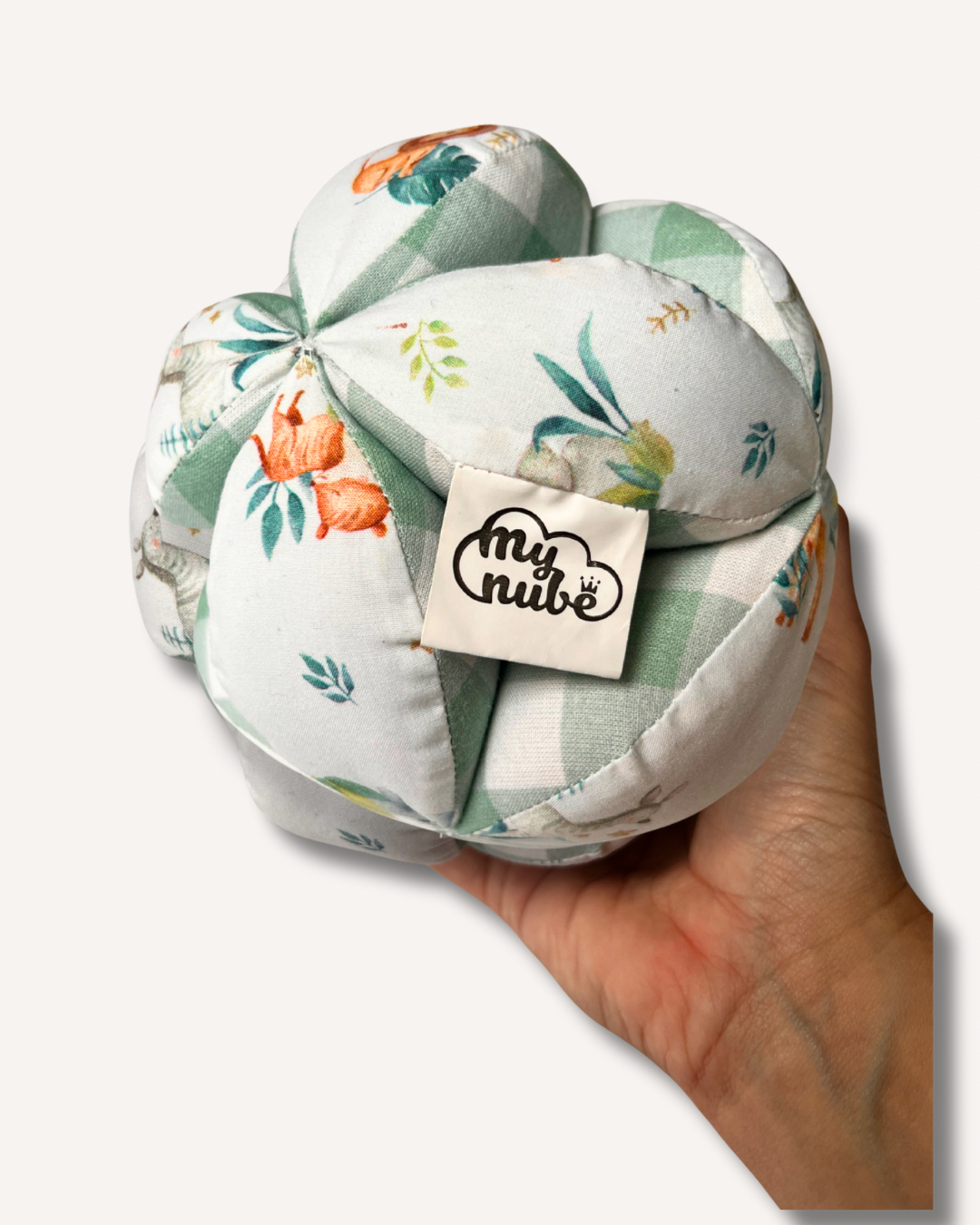 Nuestra pelota Montessori de tela está diseñada para estimular los sentidos del bebé desde los primeros meses. Su forma segmentada y blanda favorece el agarre, el movimiento y la curiosidad natural de los más pequeños, acompañándolos en sus primeras etapas de desarrollo con suavidad y color.