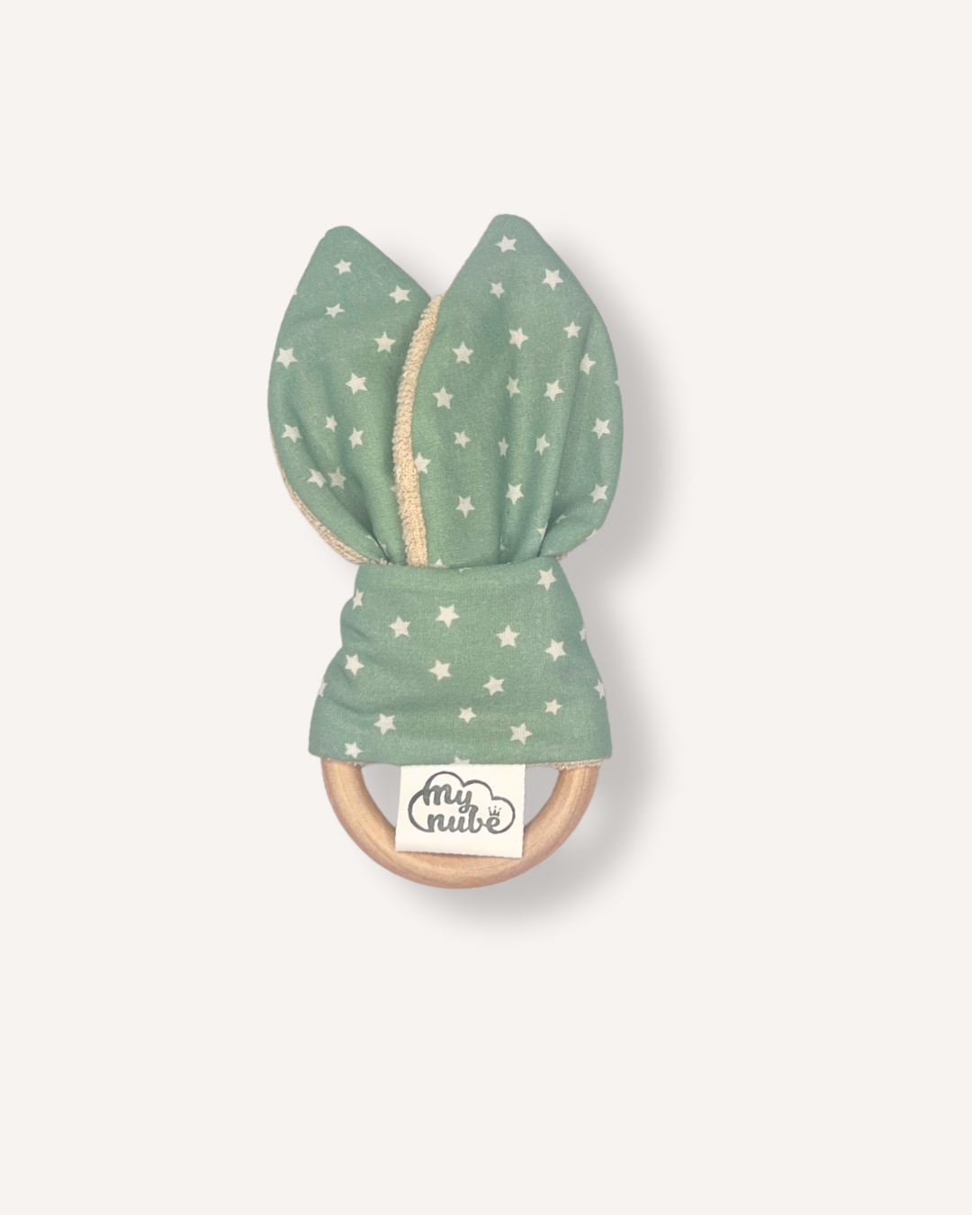 Mordedor de madera natural con orejitas de tela My Nube Azul
